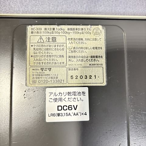 - 備考 機能: 体脂肪計、BMI測定、体水分測定 – 電源: 単三電池×4本(別売) – 記録: SDメモリーカード(別売)