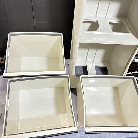 - 備考 キャスター式で移動させるのも便利 中のボックスも簡単に脱着できるのでゴミ捨てや掃除もしやすいです。冷蔵庫の横においたり、キッチンの隙間置けます。軽い物ならゴミ箱の上におくことも。