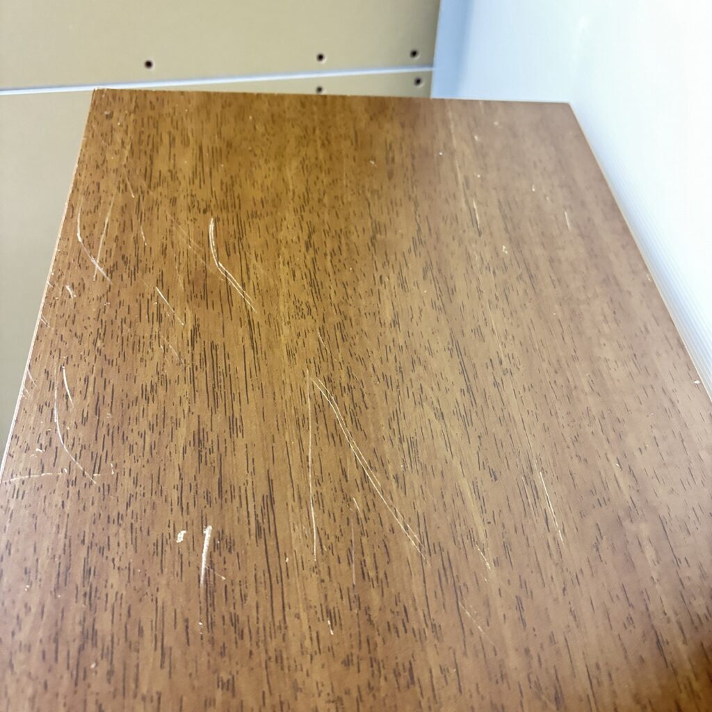 - 備考 傷は多数ありますが、しっかりとした作りと厚みや重みがある本棚です。安物のペラペラな本棚ではありません。重い本や物を入れても大丈夫な棚であります。傷が気になる方は傷が浅いので木目の補修ペンなどで修正できると思います。
