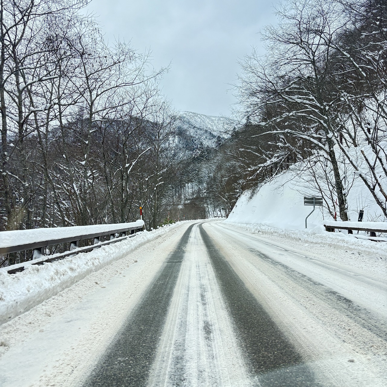 凍っていました。高速道路は塩カル散布でなんとかなりましたが、富山インター降りてからが怖かった。