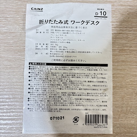 カインズ 折りたたみ式ワークデスク 税込1100円 2026年2月10日 ※イスはイメージです 欠けキズあり 商品コード M013 メーカー名 カインズ 型式 A2 年式 2023~2025ごろ 寸法 おおよそ幅80×奥行40×高さ72.5cm 耐荷重30kg 状態 天板全体に少しソリ。角に欠けキズ。天板上の塗装に一部ゆがみあり。すべて使用には問題なし 販売価格 税込1100円 付属品 なし 清掃・動作確認 拭き清掃済み ネジ増し締め 備考 蝶ネジを外すと簡単に折りたたみ出来ます。たたんだ状態で厚みが約7cmになります。 戻る