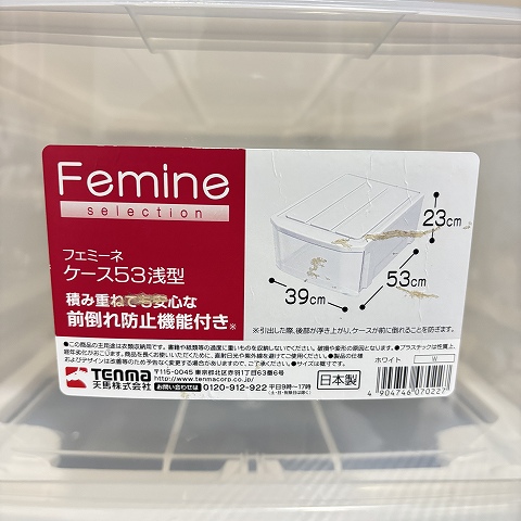 衣装ケース1段 53浅型・深型 2個セット(高さ7cm違い)税込1100円 2026年3月13日 商品コード m020 メーカー名 TENMA 型式 フェミーネ ケース53 浅型と深型 年式 2022年ぐらい 寸法 ①幅39×奥行53×高さ23cm ②幅39×奥行53×高さ30cm 状態 引き出しの蓋部分にゆがみあり。閉めた時に隙間が出来ます。 販売価格 税込1100円 付属品 清掃・動作確認 中性洗剤による水洗い 備考 戻る
